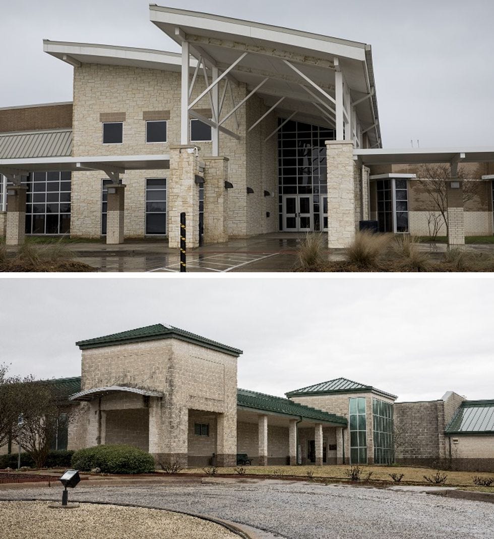 Can you guess which one's the middle school and which one's the juvenile detention facility? (Photos by Ilana Panich-Linsman for ProPublica)