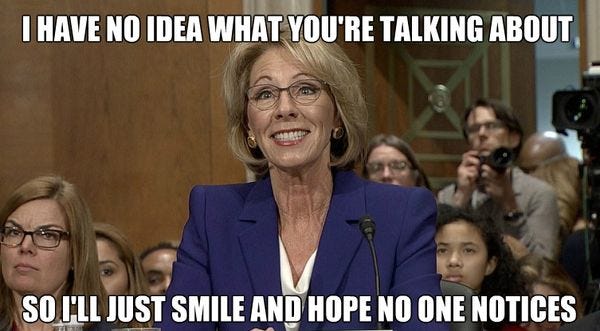 Why is it that every time Betsy DeVos smiles I wonder where the corpse she was recently chewing on is hidden?