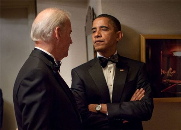 You know, something tells us this is not the way President Obama wanted to announce it, but according to some comments Joe Biden blurted out at the end of an interview with the New York Times , he and Barry are running for re-election! So, we guess, the 2012 presidential election has already more than begun, before the midterms are even over? Those things seem to come earlier and earlier every year, like Christmas decorations at the local giant chain store, or layoffs at the local giant chain store. Also revealed in this Tiger Beat profile: political fossil Walter Mondale doesn't think it's a good idea to have a black president going around campaigning for Democrats.