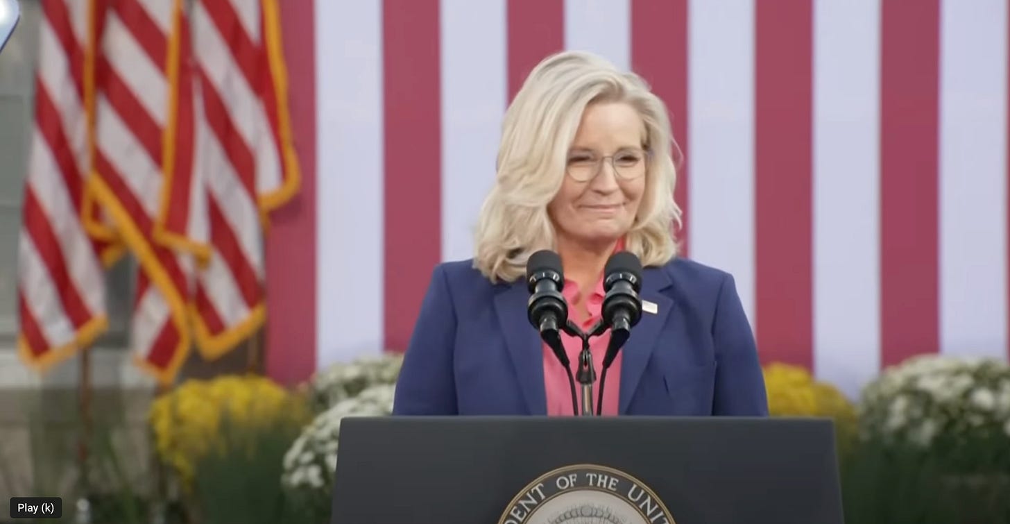 Liz Cheney has great hair and a sense of style, but she literally did one thing right. She's filthy rich and whole her elected career is over, she's never going to struggle for a moment. If the GOP hadn't gotten so openly belligerent in their pursuit of power, she'd have been happy to continue voting the Republican agenda into power.