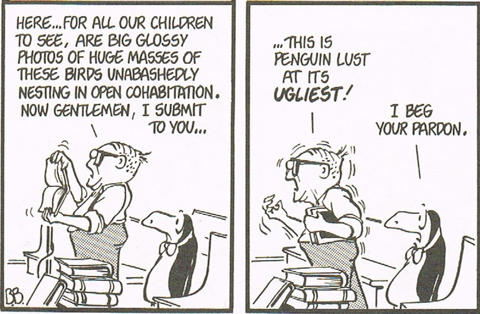 Oh, my. A lady is making slurping sounds with a pinniped, and Nolte says it's a "slippery slope"? Yes, this is the lowest sort of buffoonery, is it not? The good gentleman is winding us up -- he has to be. We know exactly where he's headed with this. We saw it coming way back in 1982: