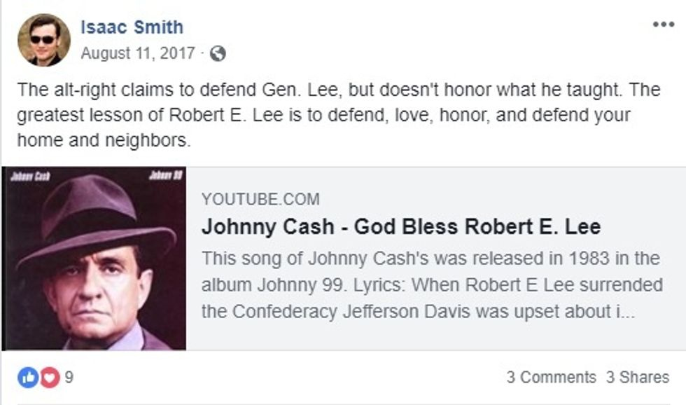 Shortly after the Virginia Democratic Party accusedRigglesworthRiggleman of hanging with a white nationalist, Smith muttered about suing them for defamation, but it doesn't appear he's bothered. Also, for all that distancing from Kessler, it's worth noting that the night of the tiki-torch march, Smith disavowed them -- mostly because he felt they'd besmirched the legacy of that great humanitarian Robert E Lee, who obviously detested racism: