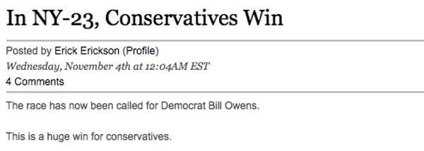 Bill Owens Wins Petty 'Election,' But Doug Hoffman... Doug Hoffman Just WinsJim NewellNov 04, 2009ShareUhhh... so let's melt Olympia Snowe again? [ RedState ]Want to just donate once?PreviousNext