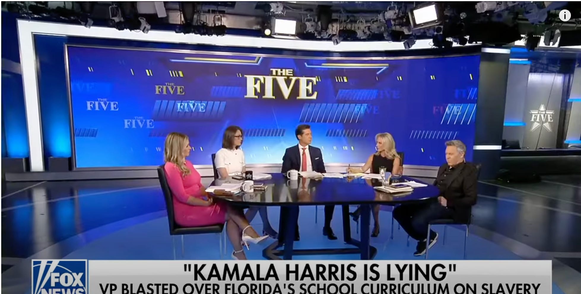 Watters claimed that Harris doesn’t want “African Americans and white Americans to know that Black Americans did learn skills despite being enslaved,” which isn’t what she said, but this is Fox News, so of course he’s lying.