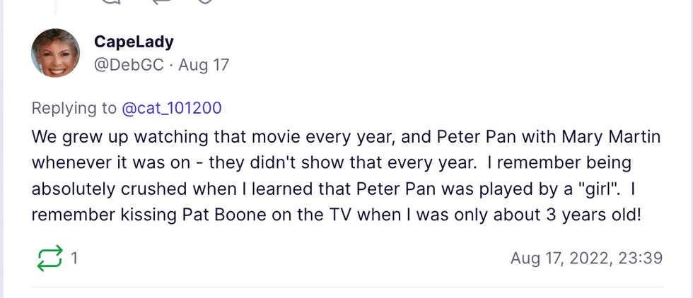 I searched for Pat Boone and found this, in response to an article about Steve Bannon's War Room ever-so-cleverly playing "Ding-Dong The Witch Is Dead" after Liz Cheney lost her primary.