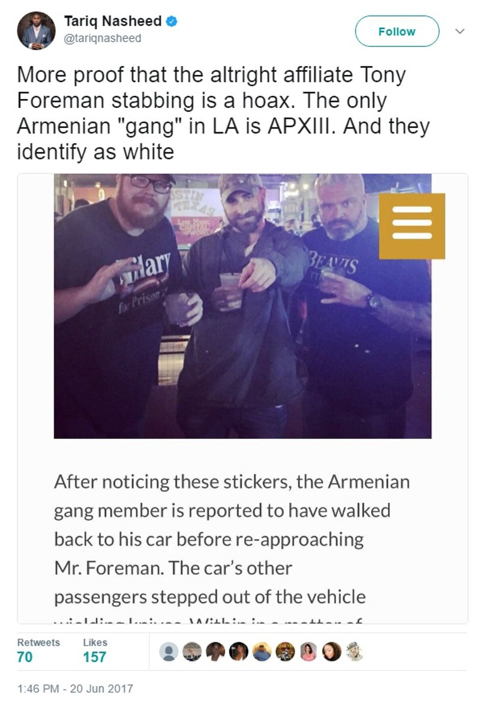 Bodyguard For 'Alt-Right' Moron Stabbed In Brawl By 'Armenian Gangsters' Who Hate White Dudes. Sure.