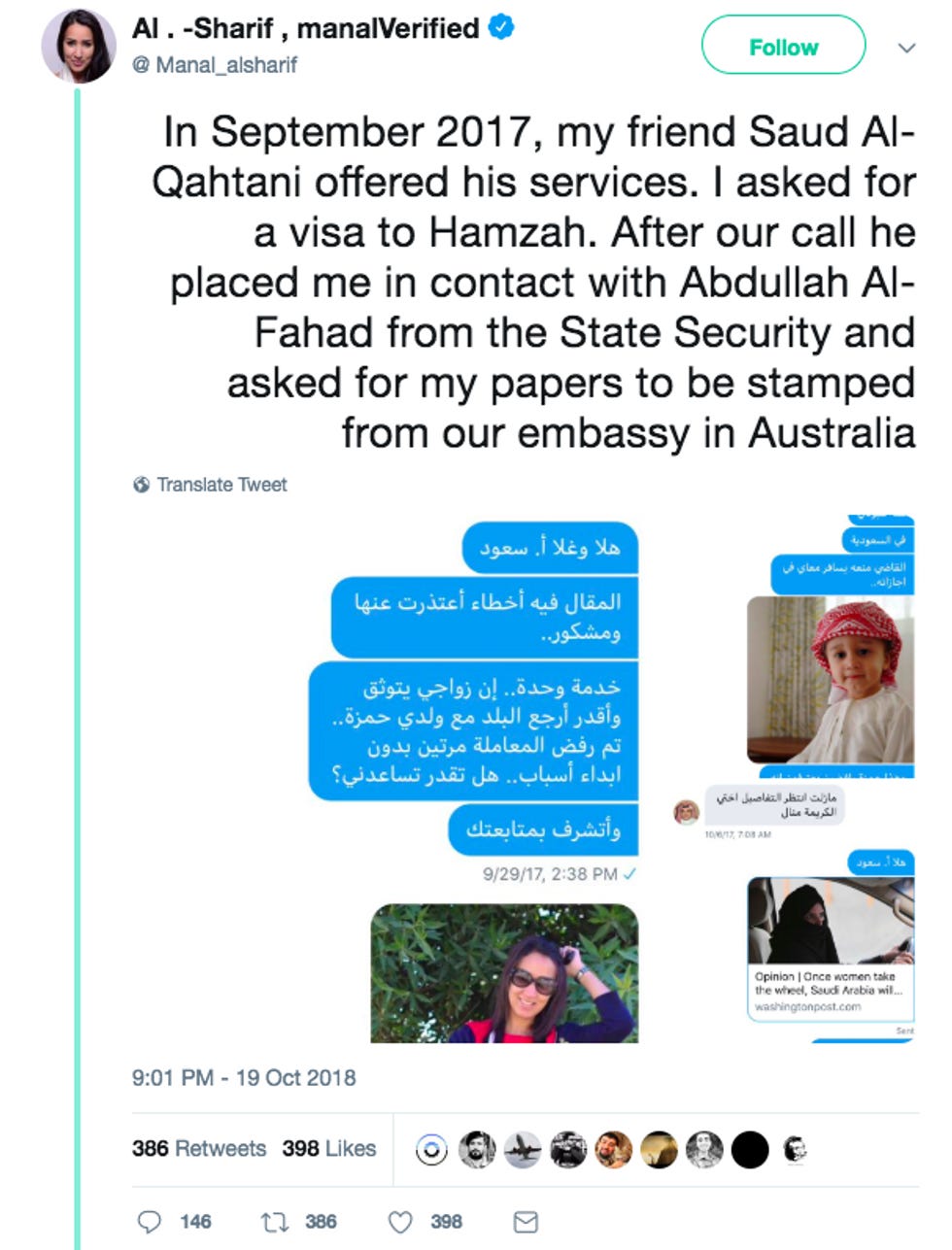 Meanwhile, MBS set about purging his intelligence service of all the bad apples who did those terrible things entirely behind his back. Pay no attention to the long history of kidnapping dissidents from third party countries, including Switzerland. Those intercepts showing MBS ordering his intelligence agents to bring Khashoggi home are all just a big misunderstanding. If MBS's top intelligence advisor Saud al-Qahtani was trying to lure Saudi women's rights activist Manal al-Sharif to the Saudi embassy in Australia using pictures of her son, it was for entirely legitimate purposes and without the knowledge of the Prince, who granted women the limited right to drive, and then locked up all the activists who had agitated for it.