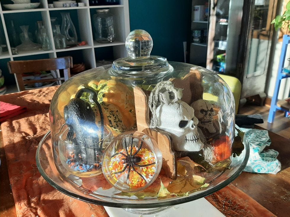 Here's some cute Halloween centerpieces and some stupid ones! We did number 14, on a cake plate. (You can scroll down the page instead of clicking slideshow.) — Better Homes and Gardens