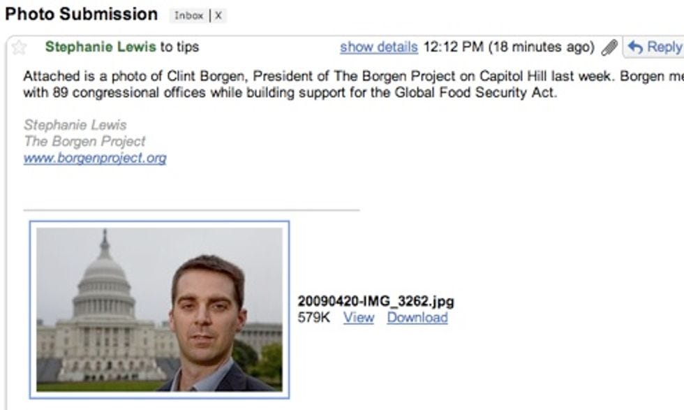 Remember when these maniacs from the Borg Planet attacked Wonkette's comments? When was this? A year ago? Last month? Who can remember. But then they were gone, as if crushed by their robot godhead. And then, today, we received this delightful email. A picture, of the Borgen Project? Yes, please!
