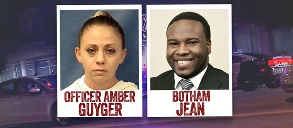 Here's what we know: Officer Amber Guyger, 30, returned to her apartment at theSouth Side Flats at the end of her shift. Like the total non-ditz you want patrolling the streets, she allegedly parked on the wrong floor of the garage, didn't notice she was on the wrong floor of her building, and entered what she wrongly thought was her own apartment. She then surprised Botham Shem Jean, 26, with her presence and by suddenly ending his life.