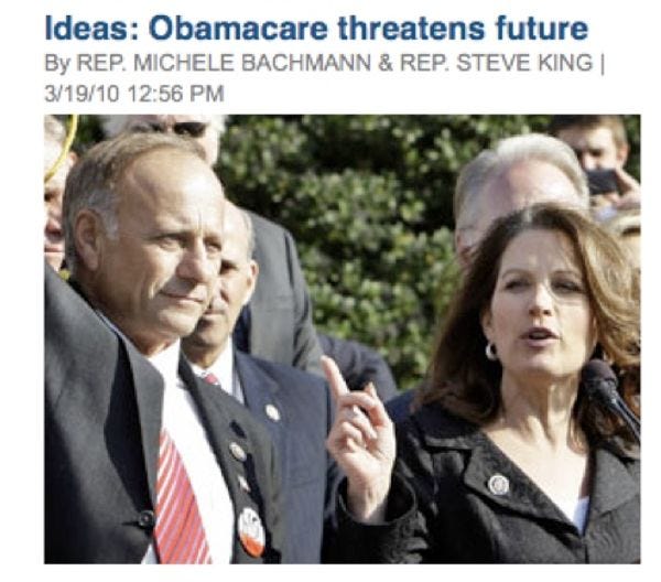 Steve King and Michele Bachmann bravely stood up to Big Discriminated Black Farmer on the House floor last night, arguing against the Pigford II and Cobell settlements, which provide for the government to pay claims to black farmers against whom it once discriminated. According to Steve King, in an artful flourish, these payments are merely reparations for slavery, because black people + farming = slavery. DO THE MATH. Also, President Obama does not care for REAL farmers, who are white. He only cares about black farmers, who are somehow fake and "urban," despite being farmers . King: "Figure this out, Madame Speaker: We have a very, very urban Senator, Barack Obama, who has decided he's going to run for president, and what does he do?" He sighs because he has to deal with bigots like Steve King.