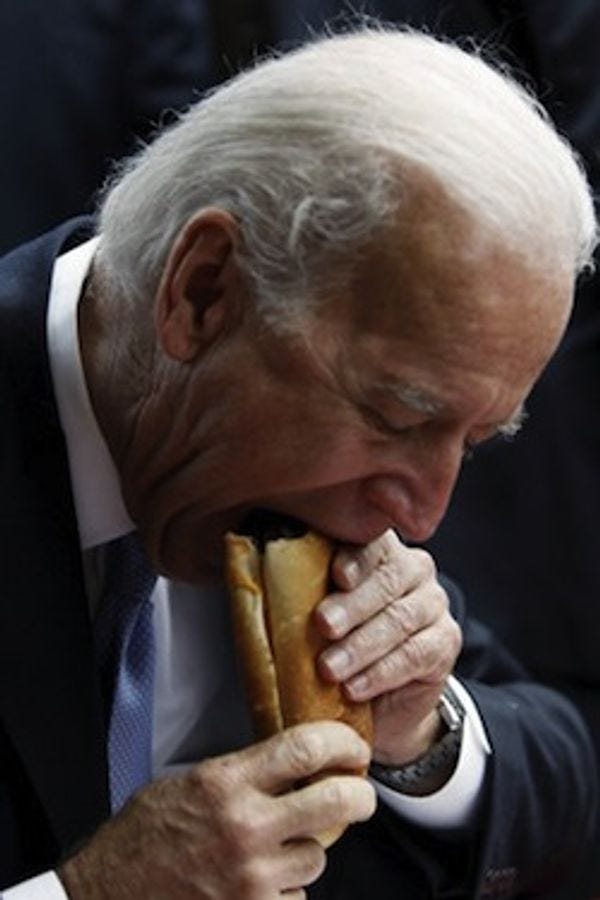 How do we know this is an outrage? Because Very Serious Journalist Matt Drudge tweeted it , ergo, outrage. That "cheap" bastard Joe Biden dared to buy some sammiches and did not have enough cash to pay for them and tried to get out of paying them, like some kind of cheap guy, except that he insisted on paying for them but with cash he borrowed, so we don't even know how that makes him cheap, whatever. This might be his Waterloo or his Katrina or maybe even his Obamacare. Or maybe even his Obamacare II, which is apparently what we are now calling stuff we don't like , and screw you if you think that doesn't make sense, why do you hate freedom?