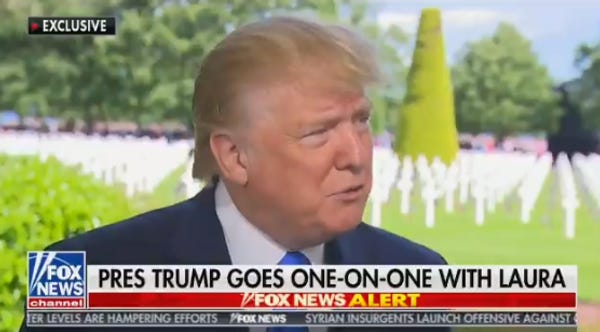 Instead we'll talk about the interview Donald Trump did with the nighttime Fox News racist lady, Laura Ingraham, and how Trump literally delayed the ceremony at the American Cemetery in Normandy so he could get his Fox News fix.