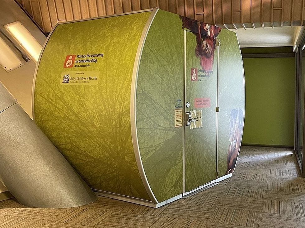 The kinds of spaces allowed under the law can be as simple as a space with a curtain or partition; they need to be away from windows or security cameras. Larger employers with more workers may go with a full scale "lactation pod" like the one pictured up top, at Naval Hospital Jacksonville, which the Navy Medicine Flickr page tells us also provides "'Milky Way' rooms for pumping or breastfeeding" at two locations in the hospital, Labor and Delivery, and the pediatric clinic. Egads, the military is going woke, and how can we beat China in a land war if we let nursing mothers at stateside hospitals conveniently feed their babbies? (Trick question: Both sides would be wiped out in a nuclear war.)