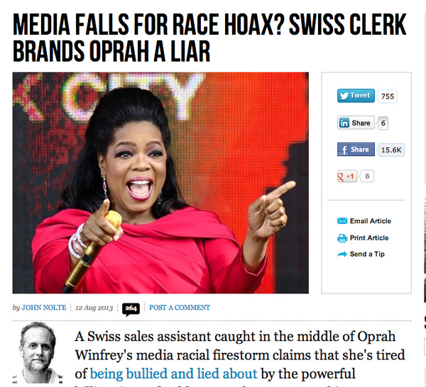 Breitbart Unafraid To Ask: Why Is Oprah Winfrey Such A Racist Liar?