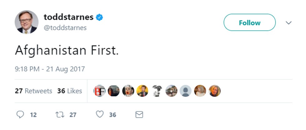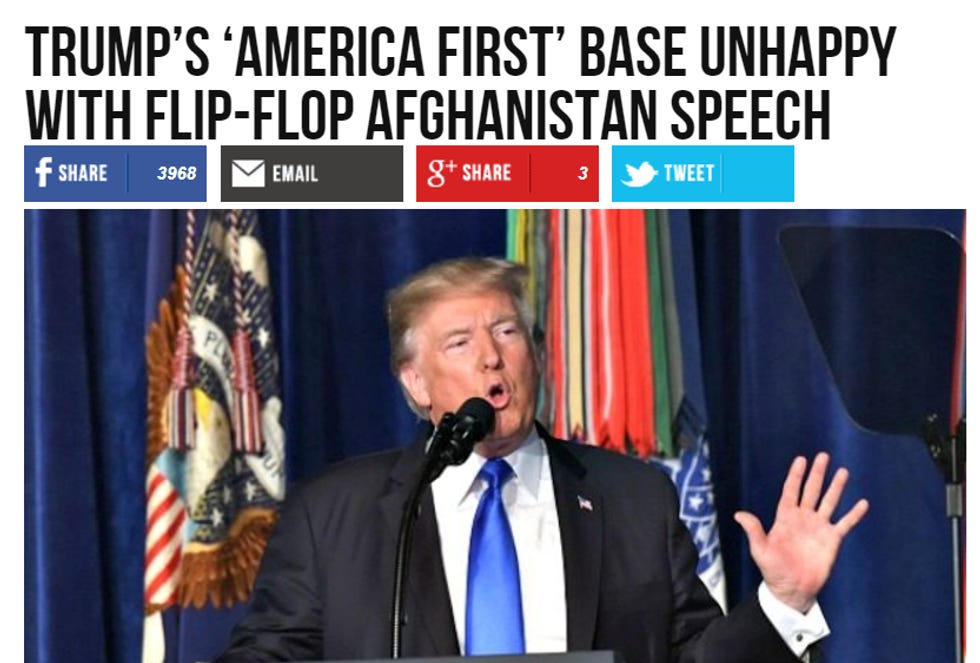 The article goes on to say Trump's "America First" base, you know, the Nazi dogwhistle loser stains who voted for him, were the "biggest loser" from Trump's Afghanistan speech. It notes that this is the first speech after the unseemly quit-firing of President Steve Bannon, and whines that this is NOT what a significant minority of Americans voted for in November. GRRR ARGH.