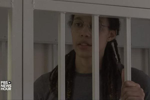 Supporters of Griner have — loudly — condemned the Russian verdict and sentence, and have called for her release; before last night's WNBA game between the Mercury and the Connecticut Sun, members of both teams linked arms on the court and held a moment of silence — 42 seconds, for her jersey number — which broke down near the end as fans chanted “Bring her home! Bring her home!”
