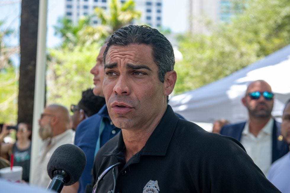Miami Mayor Francis Suarez speaks to reporters outside the Wilkie D. Ferguson Jr. US Federal Courthouse in Miami, Florida, on Tuesday, June 13, 2023. While touring the scene, Francis, a Republican, was accosted by supporters of indicted former president Donald Trump, who hurled salacious and conspiratorial allegations, and criticized him over rumors he intends to announce his own 2024 presidential run.