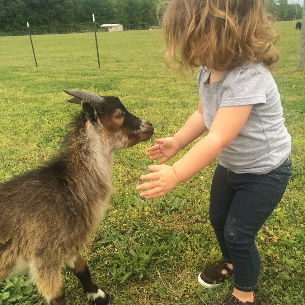 While you are putting Wonkette in your box (AND SCROLLING BACK UP TO GIVE US $5, $15, or $25 BUCKS IF YOU HAVEN'T ALREADY) here's a picture of yr Wonkette niece (who is totally a little girl now, and not just a dumb toddler) meeting a goat: