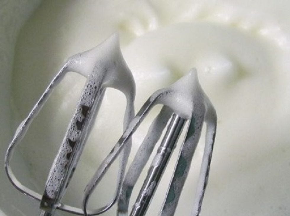 Now, whip the egg whites until stiff but not dry.