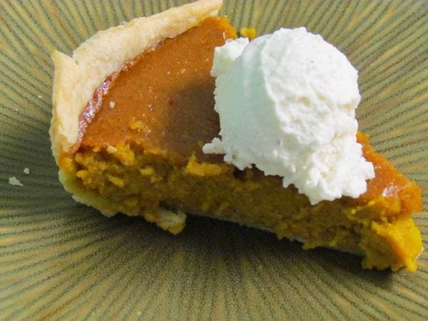 If your Thanksgiving host is any damn good at hosting Thanksgiving, there will be plenty of whipped cream available to dollop on slices. We're eating it with vanilla ice cream today for our health. We will wait until next week to begin drinking heavy cream by the quart.