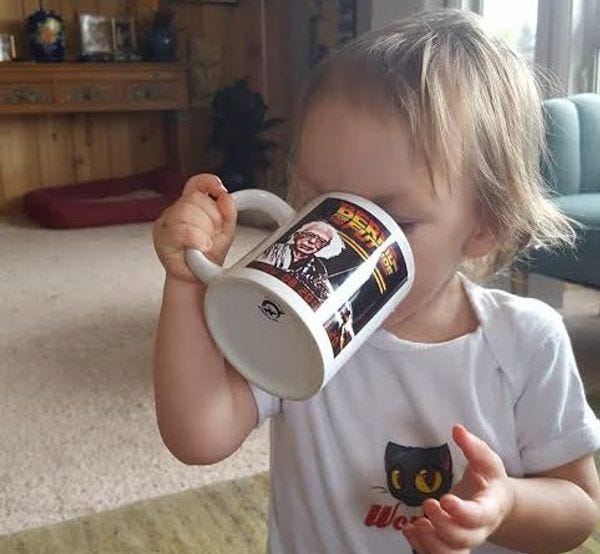 We aren't allowed to advertise our Bernie For the Future mugs online, so we're not putting a picture of it here. You'll have to email rebecca at wonkette dot com with the secret code words, "hey can I buy an Ill-Eagle Bernie mug?" and then send money on the paypal.