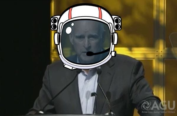 Brown said during his first round as governor in the 1970s, he'd gotten the nickname "Governor Moonbeam" because he'd proposed California launch its own communications satellite and because he had a retired astronaut on the state payroll as a space advisor. “I didn’t get that moniker for nothing,” Brown said. The more you know!