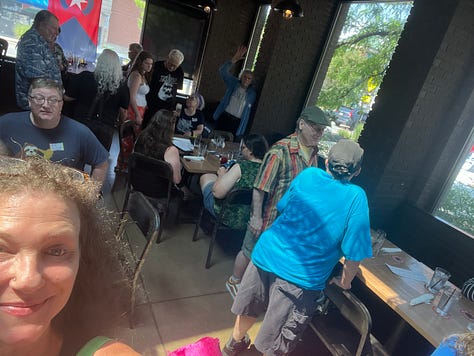 Who wants some Cleveland Wonkmeet pix, taken by various people at the Cleveland Wonkmeet? You ALL do? Yay! First pic is me with Ziggy Wiggy, your Saturday Night Movie Friend. Other pix are everyone else! It was a great turnout and a great time!