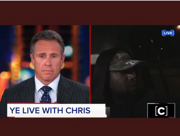 Monday, disgraced former CNN host Chris Cuomo interviewed Ye “LIVE” from what was apparently his car. He’s not dropping a new album, so all he’s promoting is antisemitic bigotry. There’s no actual news value. Cuomo could’ve probably found an antisemite willingly to come into the studio or at least turn on the interior lights in his mobile studio.