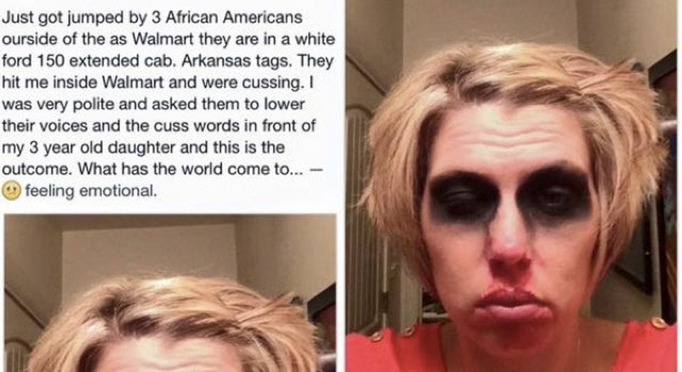 And Ashley Todd, thugs didn't hold you down and carve a B for Barack into your face. Girl, that was you. Alllll you.