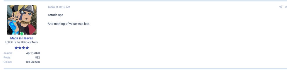Police have since learned that this attack was inspired by incel ideology — i.e., he was mad that girls didn't like him — which has become par for the course in these types of attacks. It's not surprising that an incel decided to attack an erotic spa, as the types of incels who are still very upset that the sexual revolution happened tend to have a lot of anger towards sex workers. This is demonstrated by the one of commenters on the incels.co board responding to this news by saying "and nothing of value was lost."
