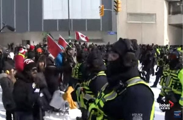 In an alarming development, the Ottawa Police tweeted that the protesters had "put children between police operations and the unlawful protest site" and that the children "will be brought to a place of safety."