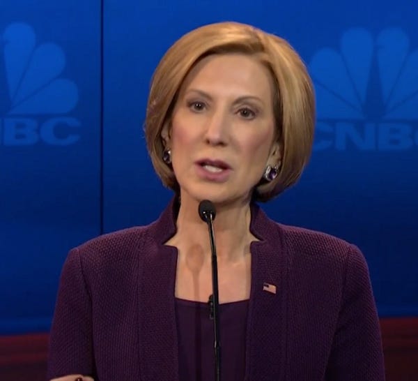 One would think Fiorina would be the go-to candidate when it comes to layoffs, considering the tens of thousands of Hewlett-Packard employees (men AND women) who lost their jobs during CEO Carly's Reign of Error. But her shitty executive abilities are outpaced by her pathological penchant for disinformation.