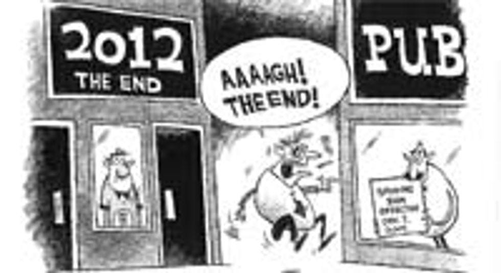 Meanwhile, there is a store, an actual physical store, where you can buy "2012 The End," just in case you are anxious for the apocalypse, and really, who isn't, at this point. Come, sweet Armageddon, take us from this vale of tears, forever!