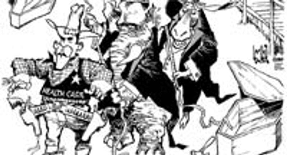 Ah, the good ol' days! They were much better than our current existence, did you know that? Like, it was illegal for the President to be a Socialist! And also, people didn't just filibuster things all the time, because they knew it was a douchebag move, so they saved it for really important stuff, like stopping black people from voting! Anyway, more and more Americans -- and by "Americans" we mean "political cartoonists" -- are looking back on the old days with fond memories, or perhaps memories of sheer unmitigated horror. It can be hard to tell!