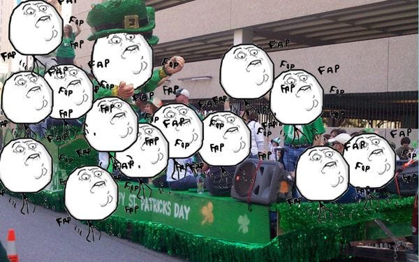 Catholic League President and sole known member Bill "I think more about gay sex than any gay person ever has" Donohue has some Very Serious Concerns about the propriety of allowing gay groups to participate in next year's St. Patrick's Day parade in New York City. You see, after 25 years, several of the most recent marked by intense eye-rolling and heavy sighs from people who aren't raving haters, the parade is finally lifting its ban on openly gay marchers. But wait just a danged minute, says Donohue. In an interview with SiriusXM Progressive Radio's Michelangelo Signorile, Donahue fretted that gays -- you know how those gays are -- might simply lose control of themselves and start masturbating furiously all over the parade route, as one does sometimes?