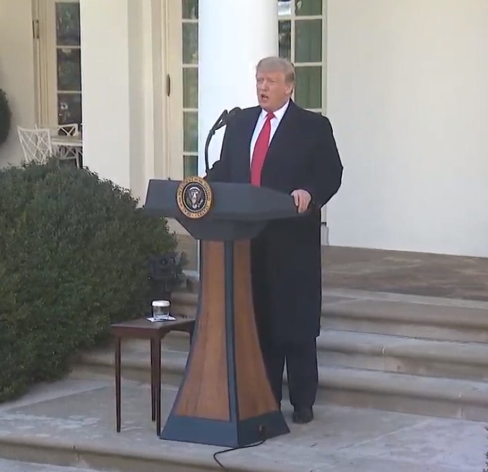 CAN IT POSSIBLY BE? Donald Trump is speaking about the shutdown at about a half an hour ago, according to the official schedule, but he ain't out there in the Rose Garden yet, because maybe he is pinching a loaf.