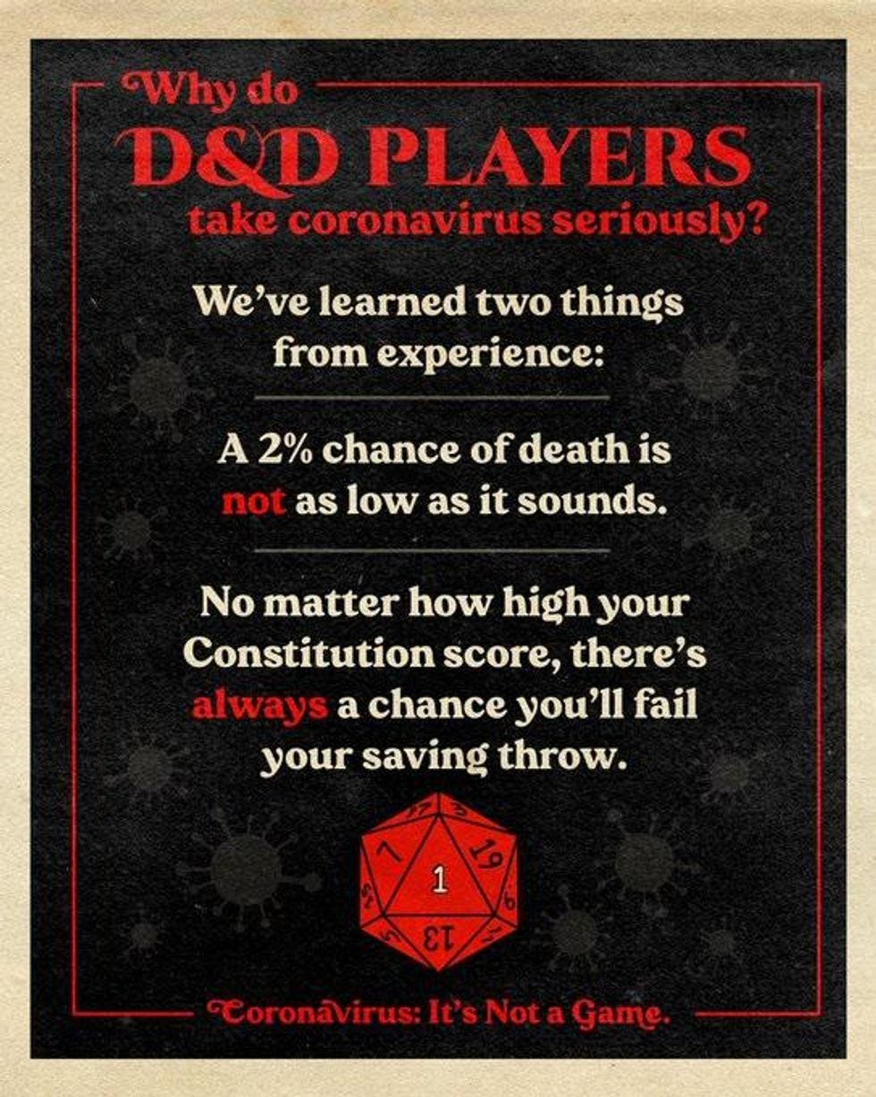 All of this reminds me of a goofy Dungeons and Dragons meme about probability and risk, sorry not sorry.