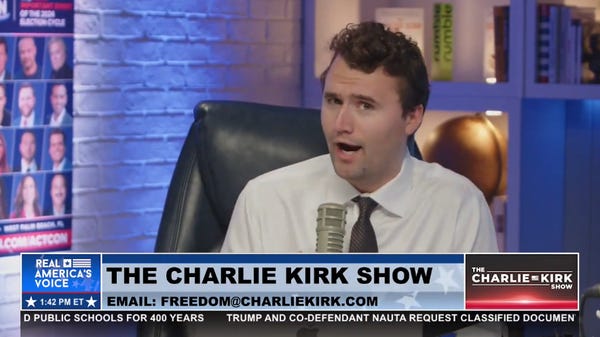 Yet here is Charlie Kirk saying it to other milquetoast lunatics who probably also say it.