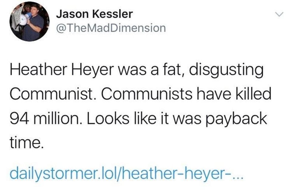 Kessler later claimed that he only tweeted that because he was drunk and on Ambien and Xanax, but no one seemed to buy that excuse, including his buddies on the Right. Likely not because they actually think what he said was bad, but because they know it makes them "look bad" when they cheer for murder.