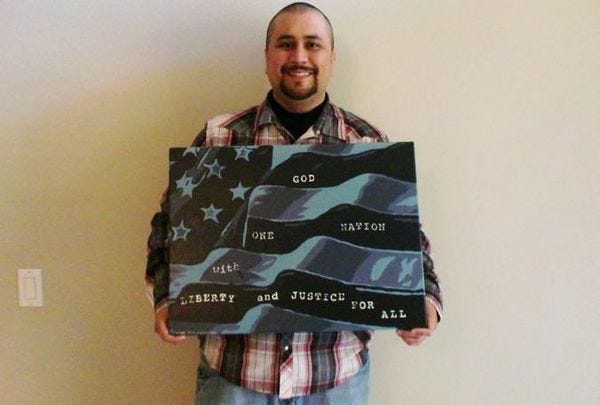 George Zimmerman misses us. He misses us so much, he is taking time off from getting arrested so many times for domestic violence to announce that he's auctioning off to the highest bigot the marvelous Freedom Stick he used to kill a child. And while he's making our heads go extra 'splodey, he is also reminding us he is a hero, and he will use the proceeds from said weapon to "fight BLM" (he means Black Lives Matter folks, not the people who watch over the birds and feed Cliven Bundy's emaciated Auschwitz cows) and stop Hillary Clinton from grabbing all the guns.
