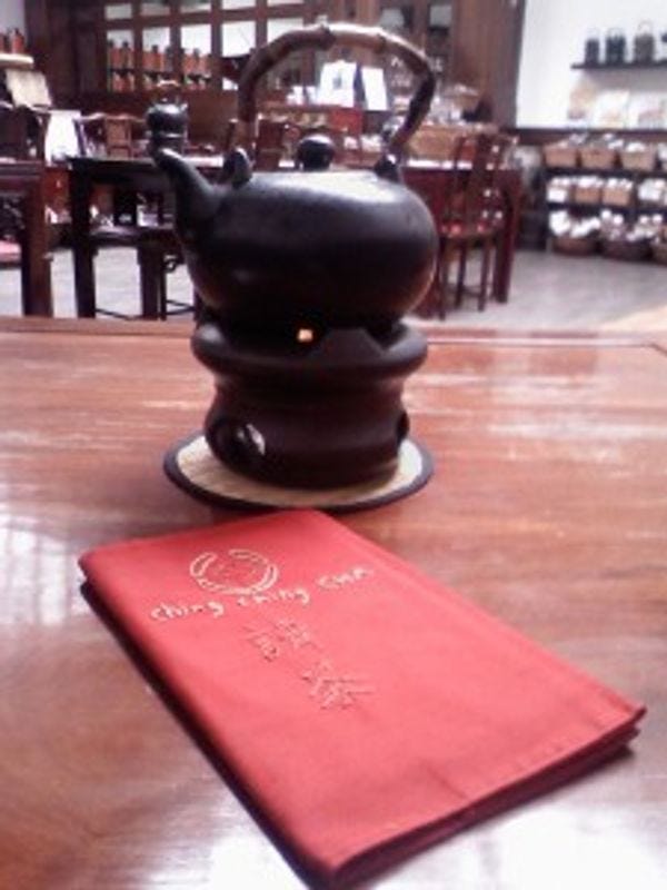 Ching Ching Cha is a delightful little restaurant that provides several things rarely found in tandem in Georgetown: cheap food, healthy food, and peace and quiet. Oh yes, and it also has loose leaf tea by the elephant ton.