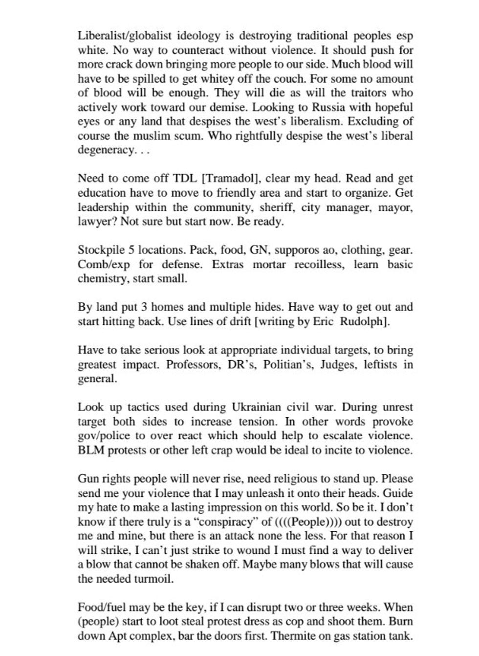 This guy was a racist True Believer, according to files recovered from his computer (the motion doesn't say what tipped off investigators to look at him in the first place, however). One June 2017 email he drafted and then deleted (but not altogether obviously) laid out his ambitions and dreams. The motion doesn't say who the intended recipients were or whether there even was anyone in the "to" field.