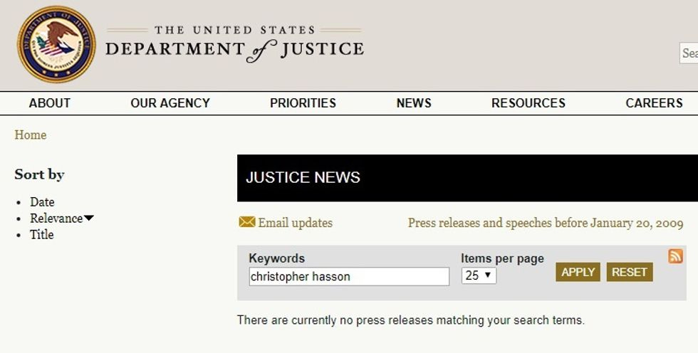 According to the "Motion For Detention Pending Trial" filed by prosecutors for the US District Court for Maryland, Hasson reeeaaallly needs to be held without bond because he is a freaking danger to the public. The court filings are, we should note, the only reason we know anything about this would-be mass murderer, because unlike how things worked in the Before Times, the US Department of Justice has so farmade no goddamn mention at all of the arrest of a white nationalist terror suspect. No, not even after the story has been all over the media.