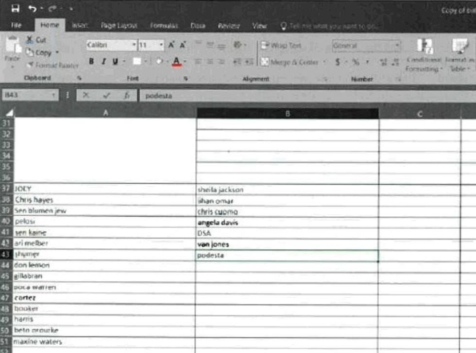 Among those Hasson wanted to kill were MSNBC hosts Chris Hayes, Ari Melber, and Joe Scarborough ("JOEY"), and a whole bunch of terrible Democrats like Cory Booker, Alexandra Ocasio-Cortez, Nancy Pelosi, Kamala Harris, Tim Kaine, Maxine Waters, Chuck Schumer, Kirsten Gillibrand, and two amusingly nicknamed targets, "poca warren" and "Sen blumen jew," HA HA FUNNY.