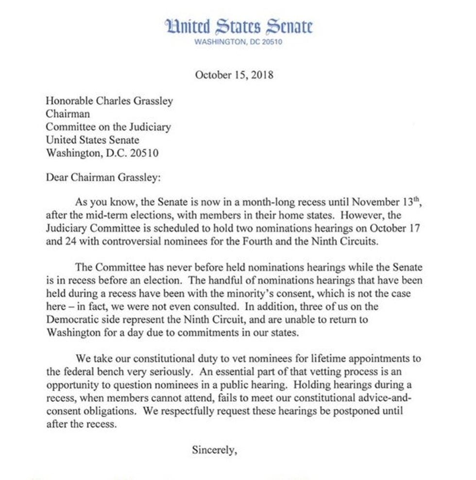 Grassley insists that even though the Senate is in recess for October because of -- we repeat -- the "deal" struck by Schumer and McConnell, there MUST be hearings on two additional Trump nominees. Dianne Feinstein and other Democrats on Judiciary complained yesterday, saying, hey, dude, RECESS. Grassley gotta cut a bitch?
