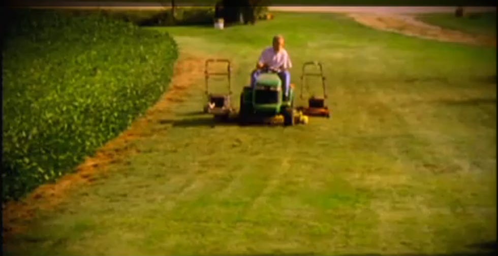 Here's the ad. The mower thing appears briefly at the 0: 45 mark. You don't see it too long, but it looks like Grassley has trouble steering the push mowers. So this thing he's doing is harder and probably spends more time and gas than if he just used his riding lawnmower.