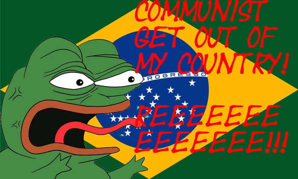 This take is particularly curious, I think, given the anti-political correctness rallying cry of "I care about facts, not your feelings!" so often uttered after announcing a racist "fact" they just made up or got from a white supremacist site that just made it up. He's basically admitting that he and the rest of his cohort are a bunch of fact-ignoring imbeciles whose emotional maturity is best represented by a cartoon frog yelling "REEEEEEE!"
