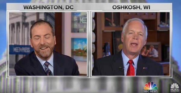So it comes as no surprise that when Johnson went on "Meet The Press" on Sunday, Wisconsin was not sending its best. And Chuck Todd -- ATTA BOY! -- was not having it, just like he wasn't having it when Louisiana GOP Senator John Kennedy v isited him recently and shouted UKRAINIUM ONE at him for 10 minutes.