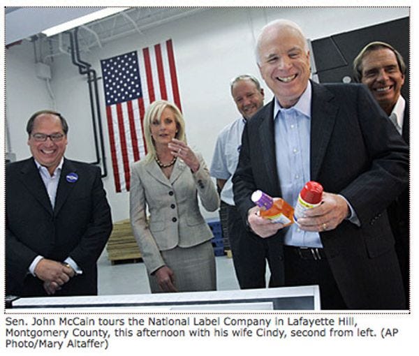 Thank you to reliable Wonkette Philly operative "D-mac" for sending us this image from the front page ofphilly.com earlier today. Ha, the "National Label Company," WHAT? Whatever it is, they make drugs, orange drugs, and Cindy just starts feeling that itch all over her body.